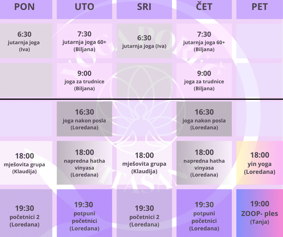 Satovi za trudnice kroz sva tri trimestra. Položaji su namijenjeni tijelu buduće majke, a tu su i vježbe disanja i meditacija koja nježno vodi polaznicu na njezinom putu k majčinstvu